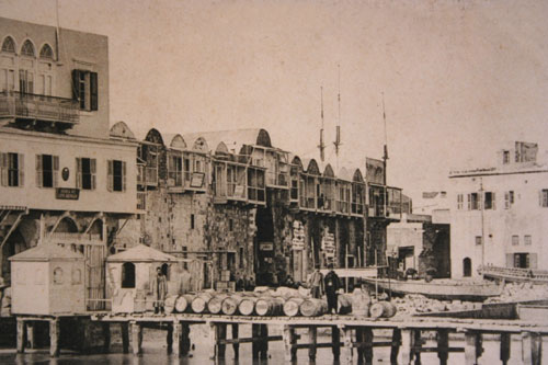 Les commerçants transportaient les fardeaux sur le dos des porteurs allant des bateaux à la côte et vice versa. Le mouvement du travail dépendait de la situation de la mer (calme ou déchaînée), ce qui a poussé les commerçants à demander de la Municipalité de leur construire une simple charpente, à condition qu’elle prenne pour le dévidage et l’embarquement une somme convenue entre les commerçants et la Municipalité. Ainsi une charpente fut établie pour ce processus de transport des fardeaux. Vu le mouvement actif de cette charpente, les commerçants ont demandé de la Municipalité d’en établir plusieurs. En effet plus de 7 charpentes ont été établies, entre autres : |