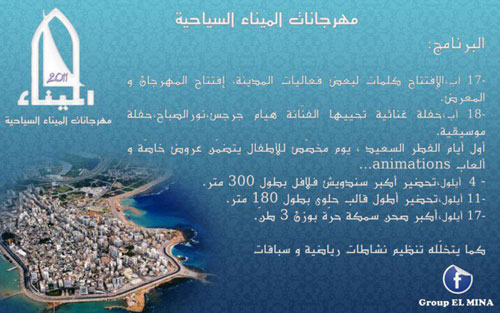 "الجمعية اللبنانية للتنمية الإقتصادية المحلية” بالتعاون مع "بلدية الميناء" بدعوتكم للمشاركة بمحاضرة تحت عنوان "الدور الإقتصادي والمزايا التنافسية لمرفأ طرابلس" يقدمها مدير مرفأ طرابلس الأستاذ أحمد تامر الزمان: الجمعة 1 تموز 2011 الساعة السادسة بعد الظهر المكان: قاعة المحاضرات في بلدية الميناء |