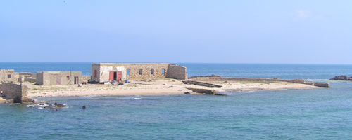 | عرفت في العهد الصليبي باسم " القديس نيقولا" لأحتوائها على كنيسة تحمل اسم هذا القديس. طول هذه الجزيرة 560 م و عرضها 260 م. و ينقسم سطحها الى ثلاثة اقسام ، القسم الغربي و هو صخري و ارتفاعه عن سطح البحر يوازي ستة أمتار و القسم الأوسط ترابي أما القسم الشرقي فهو يمتاز برمله الأبيض الناعم و لندرته أصبح مطلوباً لتجاّر الأكواريوم، و تلمح في هذه الجزيرة بقايا جذور النخل المخلوعة من الجذور . | |||||||||||||||||||||||||||||||||||||||||