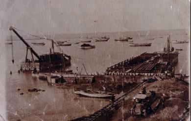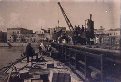 Grimblate Scaffold: · In 1922, the French Jean Grimblate asked for a permission of building a metallic scaffold, and he committed himself to provide it with mechanical charge-lifters functioning on the asbestos (there are still two charge-lifters in front of Cleopatra cinema), to install the railroad lines, and to connect them to the customs’ kiosks, in condition to empty out strictly the exported and imported products through the sea in this scaffold. · In 1924, the scaffold started functioning under the supervision of Grimblate’s representatives, Octave Abwar and the Greek engineer Jacques Tataraki. It was known later by The Company of Sea and Land Engagements – Grimblate’s Company. |