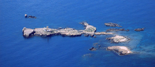 · It is located near the two mentioned islands and measures around 16 thousands m2. · The minister of Public Works built a lighthouse for guiding the boats. · This island was equipped with artillery against the planes during the World War II, in order to block the German attacks on Tripoli and El-Mina. |