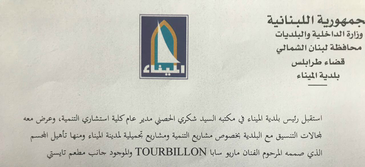 | إستقبل رئيس بلدية الميناء عبد القادر علم الدين وفداً من منظمة "صنع بيروت Made of Beirut" ضم السادة رأفت حمزة و نايلة أبو عزيز و ربيع خليفة و عماد الجميل. | ||||||||||